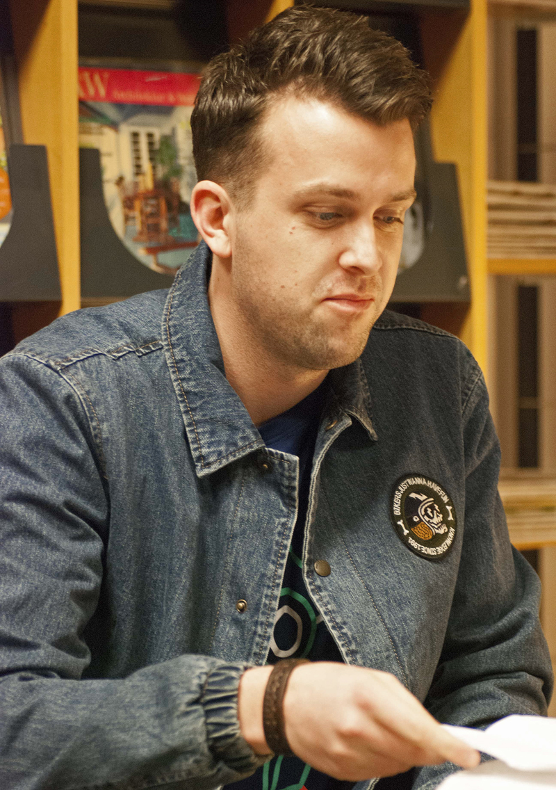 Gastredakteurin Pia Soldan, die unter gelegentlicher Assistenz von Joachim Feldmann das Heft konzipiert und zusammengestellt hat, konnte zwei Autorinnen und fünf Autoren zur Lesung ihrer Beiträge begrüßen. Und diese waren thematisch und formal so vielfältig, wie es das Motto der Ausgabe gestattete. Dirk Alts gewitztes Porträt eines Hofnarren machte den Auftakt, dann folgte Elisabeth Schröders ungewöhnliche Liebesgeschichte "Jochen". Experimentell-abstrakt kam André Pattens Text "Die Kiste" daher, während Thomas Kade in "Spiel, Sieg und Satz" Existenziellem auf den Grund ging. Nach einer kleinen Pause ging es mit Jonis Hartmanns verspielter "Parodie eines Clowns" weiter. Eine traumatische Kindheitserinnerung stand im Mittelpunkt von Nikola Huppertz' Romanauszug "Die Vertreibung". Zum Abschluss schlüpfte Robin Berg in die Rolle eines Fußballtrainers, der einem vielversprechenden Spielertalent entscheidende Ratschläge gibt.