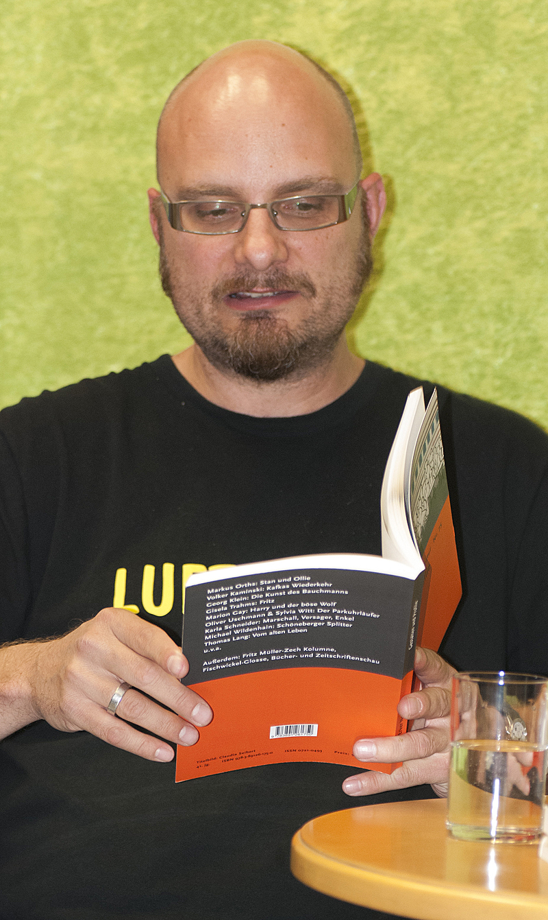 Bei der engagierten Diskussion unter Beteiligung des Publikums ging es vor allem um die Frage, wie reale Ereignisse und Begebenheiten zu Geschichten werden. Natürlich lasen die beiden auch aus ihren Beiträgen in der neuen Erker-Ausgabe, allerdings nur so viel, um die Neugier der Zuhörer zu wecken. Schließlich, so Thomas Frahms überzeugende Begründung, sollen die Hefte auch verkauft werden.