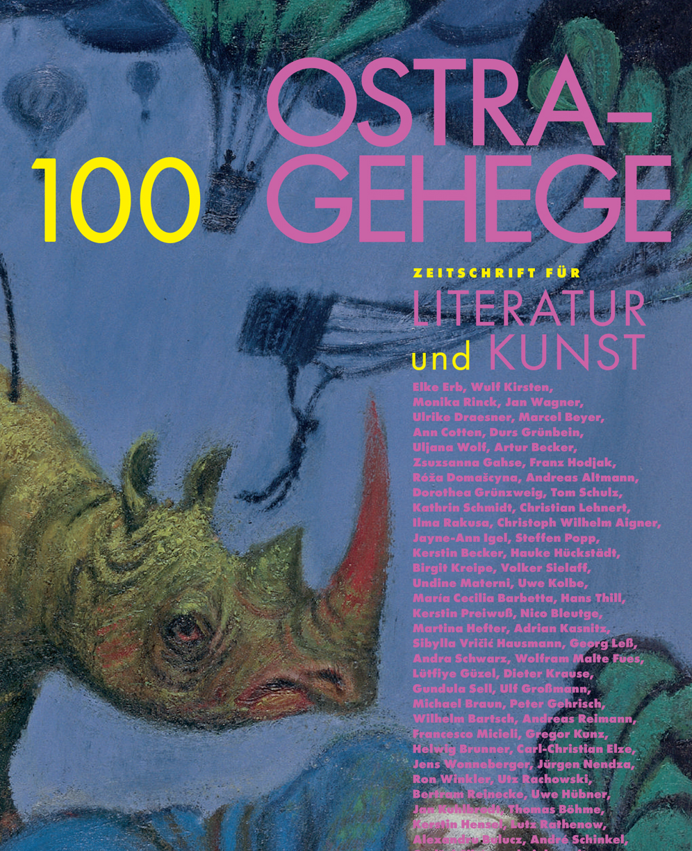 Zwei Zeitschriftenjubiläen sind zu melden, zunächst die 100. Ausgabe von Ostragehege, die auf 218 großformatigen Seiten sehr viele Autor:innen aus fünfundzwanzig Jahren versammelt. Der Truppe um Axel Helbig gelingt ein schönes Panorama vielfältigster lyrischer wie prosaischer Beiträge etwa von Monika Rinck, Marcel Beyer, Uwe Kolbe, all das zusammengestellt wohl unter dem Motto "Wer vieles bringt, wird manchem etwas bringen". So verführt das Heft eher zu blätterndem Verweilen als zu seriöser Lektüre: ein menschenfreundliches Angebot. Sehr gefallen hat mir Franz Hodjaks tiefschürfende Erkenntnis: "Für Kraniche ist Flandern / eine Heimat unter andern." Orgelnd dagegen Durs Grünbein in "Spreekanal": "Die Augen tränen vor Kälte. Unterm Eisregen blitzt / der Walzstahl Fluß zwischen gemauerten Ufern. / Alles ist eingeschmolzen: die Pappeln, Platanen, / Weiden, die ihre Angelruten ins Wasser tauchen. // Historische Wasser, aus vielerlei Zeiten legiert, / mit Toten gefüttert, Revolutionen, von Industrie satt. / Gleichgültig fließen sie an Lagerhallen, Fabrikruinen, / neuen Reihenhäusern vorbei von Schloß zu Schloß."