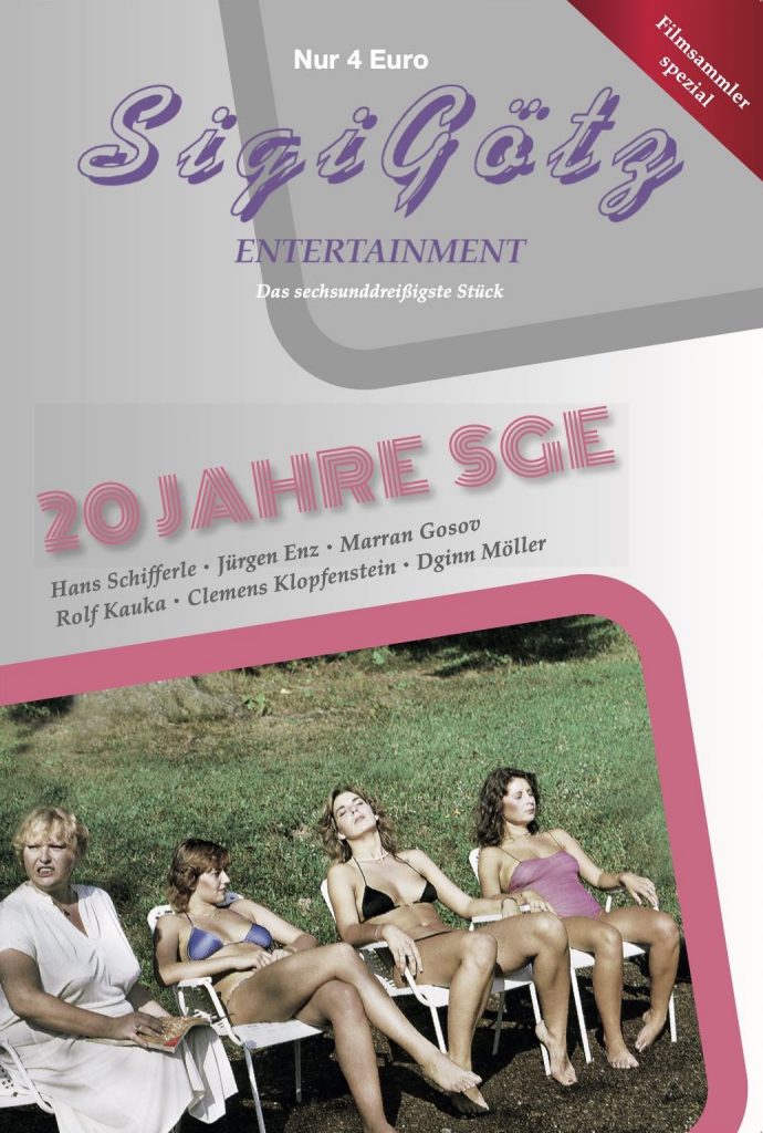 Auch SigiGötz-Entertainment (SGE), ein primär den Untiefen des deutschsprachigen Genrekinos gewidmetes Fanzine von Ulrich Mannes, feiert ein Jubiläum, das 20-jährige Bestehen. Es wurde vom Tod eines langjährigen Mitarbeiters überschattet: Der Filmkritiker Hans Schifferle, dem in SZ, FR, FAZ und DLF einlässliche, von großer Sympathie erfüllte Nachrufe gewidmet wurden, ist Ende März gestorben. Mannes erzählt im Heft, wie das Foto zustande kam, dessen Porträtausschnitt mit den schwermütigen Augen in die Zeitungs-Nachrufe gefunden hat. Und er druckt das ganze Foto, aufgenommen an einem heißen Sommertag 2007, auf dem Glamour-Girl Annika Herr auf einer Agusta des passionierten Bikers Schifferle und dazu die gesamte Redaktion, die auch aus Stefan Ertl, Rainer Knepperges und Mannes selbst bestand, zu sehen sind; dabei erzählt er unter der Hand mit der ihm eigenen verspielten Akribie eine sehr traurige Geschichte, nur dass man es kaum merkt. Später im Heft dann Schifferles schöner Nachruf auf das Aki, Münchens letztes Pornokino (im Hauptbahnhof), das Ende 1995 geschlossen hat. Als Motto des Hefts ein Zitat aus Schifferles Die 100 besten Horrorfilme (1994): "Ganz nebenbei geht es ziemlich ernst um den Tod. Manchmal sehnt man sich nach ihm, nach der Ruhe, die er bringt. Dann wieder ist er ganz einfach der große Spielverderber, der zornig und rasend macht."
