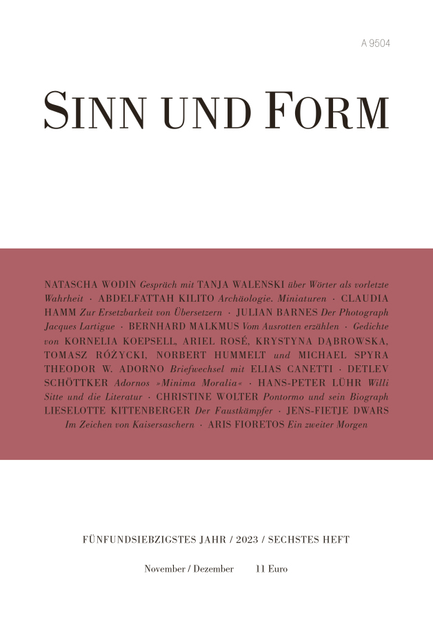 Bei kurzen Briefwechseln von Berühmtheiten sind die Kommentierungen bisweilen interessanter als die Briefe, die nicht selten nur punktuellen Konflikten, der Organisation von Begegnungen oder gemeinsamer Gremienarbeit geschuldet sind. Ein schönes Beispiel für eine erhellende, von subtiler philologischer Komik durchdrungene Kommentierung eines solchen Kurzverkehrs liefert Sven Hanuschek, der in Sinn und Form 6/2023 den Briefwechsel Adorno/Canetti von 1961/62 mitteilt, in dem es vor allem um die Vor- und Nachbereitung einer Diskussionsveranstaltung zu Canettis Masse und Macht an der Uni Frankfurt und zwei Tage später im Hörfunk des NDR geht. Während nämlich die beiden ungemein von sich eingenommenen Meisterdenker nahezu grotesk höflich miteinander korrespondieren, liefert der Blick auf andere Quellen aus dem zeitgenössischen Umfeld und besonders aus späteren Jahren übergenug Hinweise, dass die zwei einander kaum etwas zu sagen hatten und herzlich wenig miteinander anzufangen wussten, was von Seiten Adornos noch mehr gilt als von Seiten Canettis, der indessen köstliche Sottisen über Adorno hinterlassen hat, die Hanuschek nicht unverschmitzt serviert.